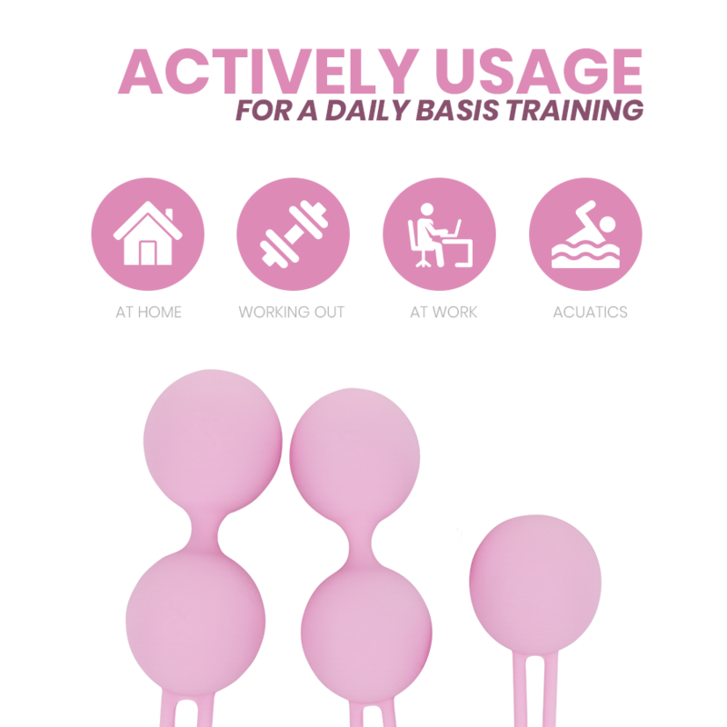 Salute del bacino intimichico II ; Basati sull'esecuzione degli esercizi di Kegel, sviluppati dal Dr. Arnold Kegel, sono una serie di contrazioni e rilassamenti vaginali che rafforzano il muscolo pubococcigeo (PC) e il gruppo muscolare del pavimento pelvico aumentando gradualmente i pesi.